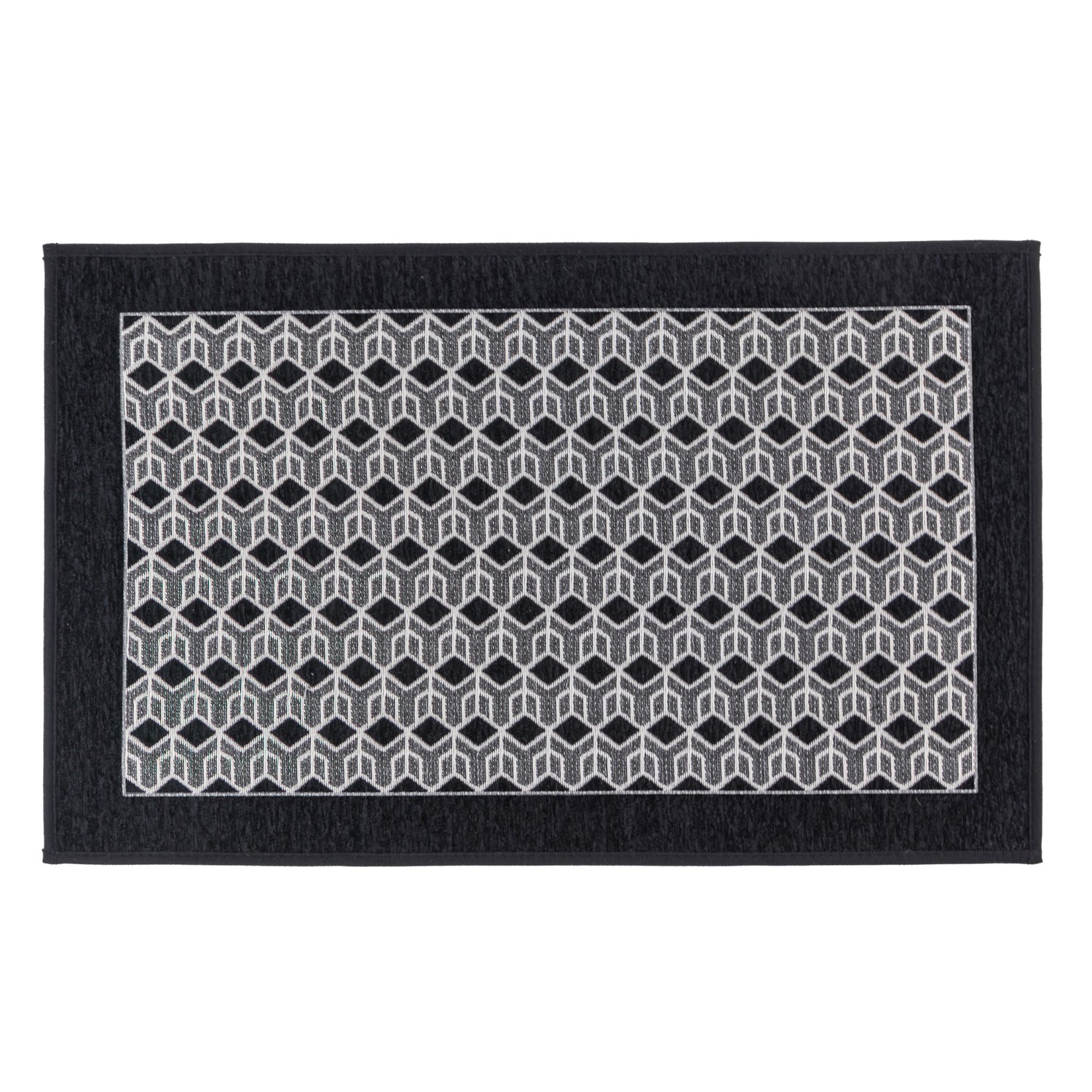 This stylish mat with a woven linen look and striking patterns, designed to suit any setting in and around your home, its elegant design combined with its durability is a great addition to your interior Perfect for entrances, kitchens, laundry rooms, offices, and more, it brings a touch of warmth and style to every setting Slim design ensures it easily fits underneath low-profile doors while the black tones blend with most decor around the homeThe slip-resistant rubber backing helps prevent movement on most floor types when wiping your feet Another great feature is the flexibility of the mat; it’s wrinkle resistant, when you’ve washed the mat, it will lay flat with no creases Love the mat?!! A matching runner is available to create a cohesive style throughout your homeWhen your mat gets dirty, it’s no problem, simply pop it in the wash at 30°C100% Polyester with a rubber backingSuitable for indoor use Size: 50x75cm approx.