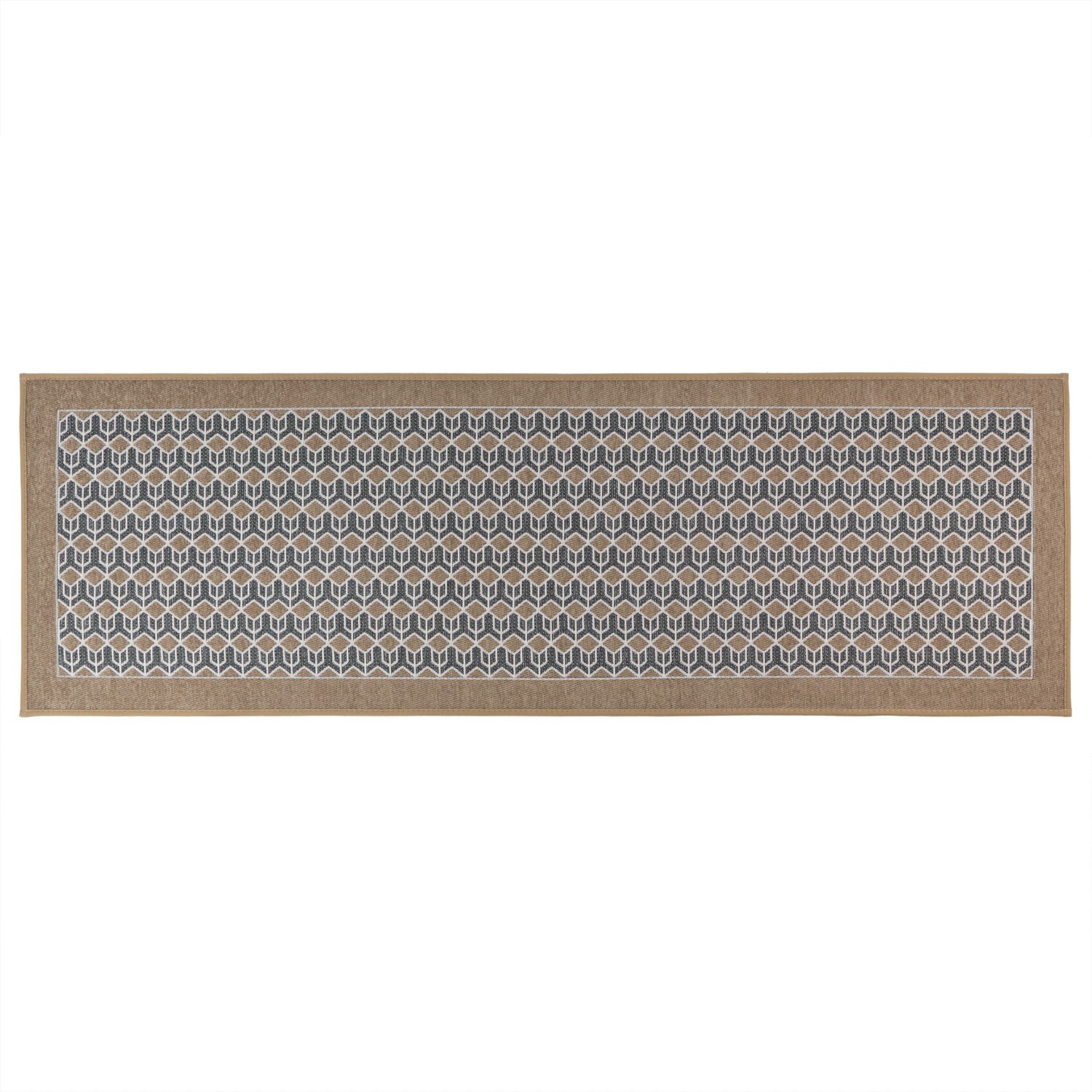 This stylish woven linen look and striking patterns, designed to suit any setting in and around your home, its elegant design combined with its durability is a great addition to your interior Perfect for entrances, kitchens, laundry rooms, offices, and more, it brings a touch of warmth and style to every setting Slim design ensures it easily fits underneath low-profile doors while the natural beige tones blend with most decor around the homeThe slip-resistant rubber backing helps prevent movement on most floor types when wiping your feet Another great feature is the flexibility of the runner; it’s wrinkle resistant, when you’ve washed the mat, it will lay flat with no creases Love the runner!! A matching runner is available to create a cohesive style throughout your homeWhen your runner gets dirty, it’s no problem, simply pop it in the wash at 30°C100% Polyester with a rubber backingSuitable for indoor use Size: 50x150cm approx.
