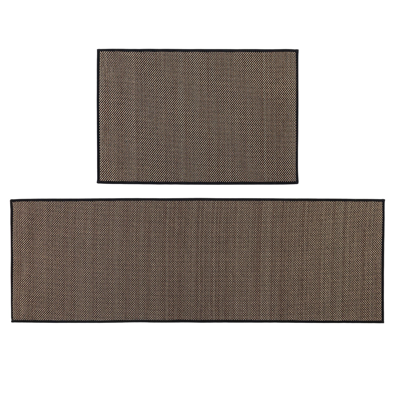 Set includes matching mat and runner creating a cohesive style throughout your homeThis stylish set features two-tone colours creating a natural weave effect, designed to suit any setting in and around your home, its elegant design combined with its durability is a great addition to your interior Perfect for entrances, kitchens, laundry rooms, offices, and more, it brings a touch of warmth and style to every setting Slim design ensures they easily fits underneath low-profile doors while the black/brown colours blend with natural tones around the home The slip-resistant rubber backing helps prevent movement on most floor types when wiping your feet Another great feature is the flexibility; it’s wrinkle resistant, when you’ve washed the mat, it will lay flat with no creases When your mat and runner get dirty, it’s no problem, simply pop it in the wash. The range is fully machine washable at 30°C100% Polyester with a rubber backingSuitable for indoor use Mat: 50x75cm approx. Runner: 50x150cm approx.