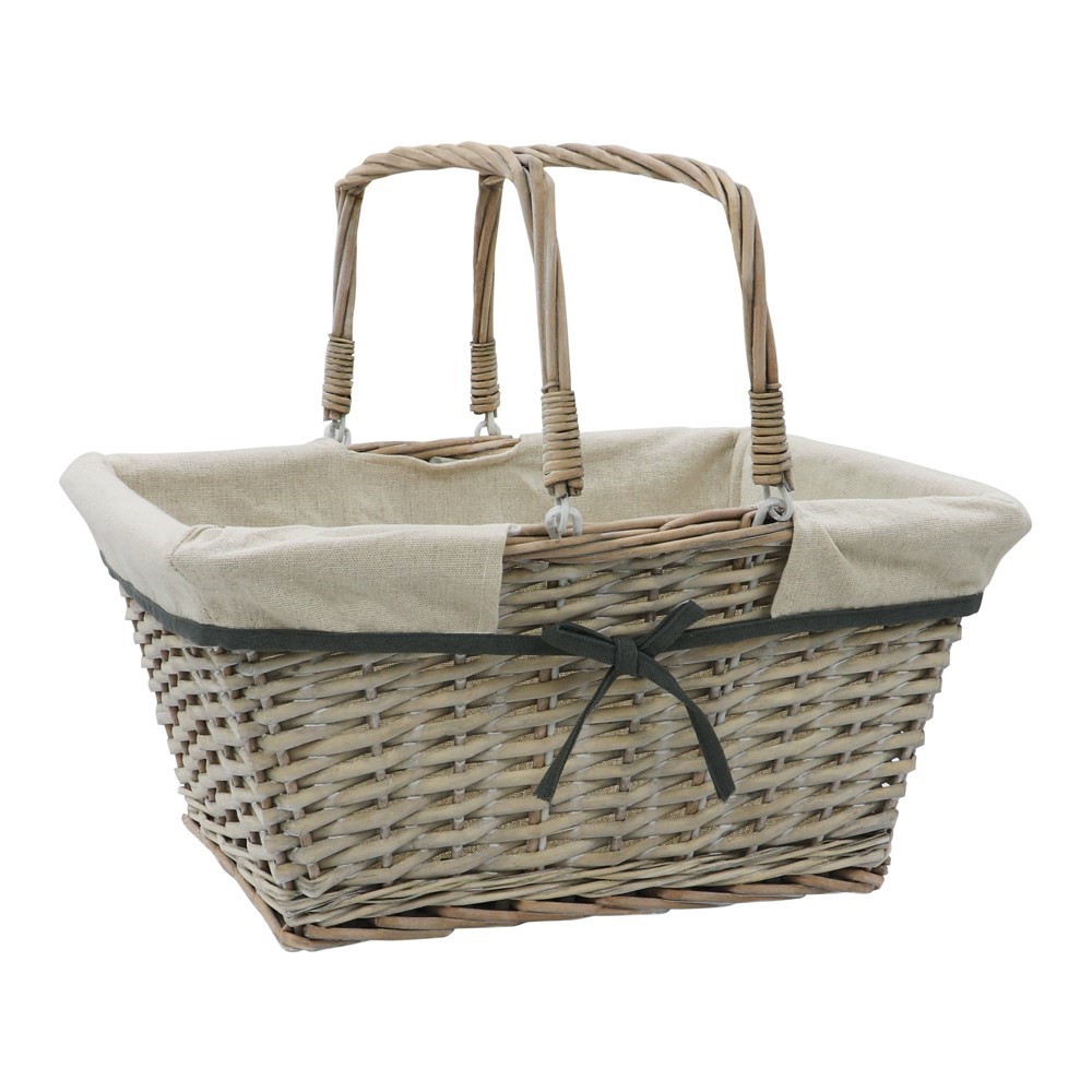 This beautiful willow shopping basket is perfect for using around the home. They are handmade and woven from willow, giving a traditional feel while the antique wash colour allows it to sit in any modern space, meaning its suitable for most interior styles. The rectangular lined shopping basket could be added to existing furniture for handy storage or to style around the home as a feature, why not pop to the shop and save on single use plastic?! Use around the home for all storage needs and suitable for use in any room such as the bedroom, living room, laundry/utility room or the office. Willow is rapidly renewable; renewable materials come from living sources and regrow as quick as they’re used. Our artisans use these raw fibres to handcraft our woven baskets. The neutral tones and strength make it ideal for basket-weaving and complement the home decor.