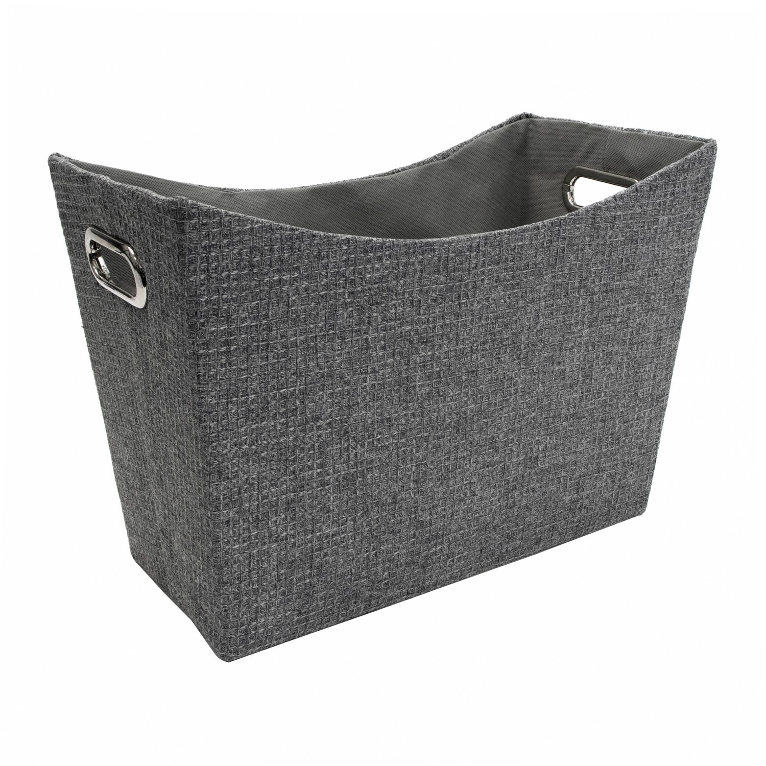 Features:Tapered magazine holder to keep your home tidy and clutter free Our Chroma storage collection in charcoal grey links perfectly with the Scandinavian style interior trendDesigned to complement most interior décor and can be used around the home Our fabric storage box is so versatile, perfect for storing magazines, newspapers, books or even small garments such as scarvesAn attractive open storage box with chrome effect handle hole detail that adds that finishing touch. It is well suited to the hallway, the end of the sofa, the office and more.