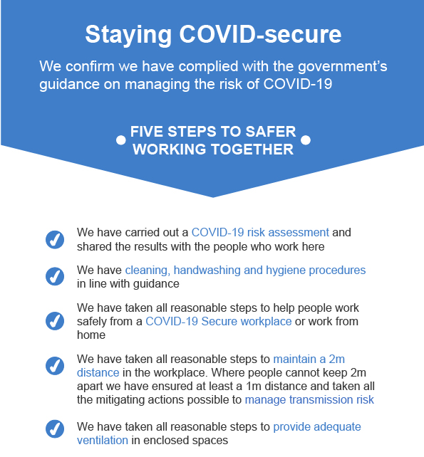 ✅ We have taken all reasonable steps to help people work safely from a COVID-19 Secure workplace or work from home