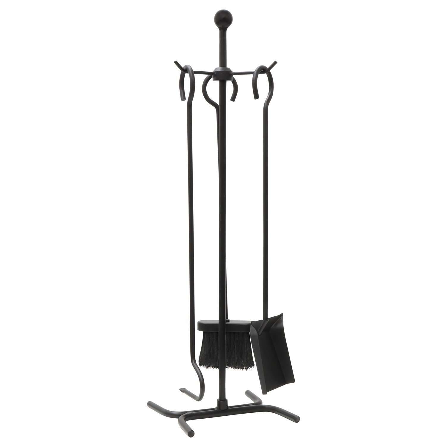 Crafted using steel and powder coated in black for a sleek finish, this contemporary set will add character, charm and style to your fireplace. The Edale three-piece set comes with all the fireplace tools you need including shovel, brush and poker, complete with stand. It stands tall with a stylish, slim frame where the three fireplace tools hang, meaning it won’t take up too much space. . The companion set has simple, looped handles that provide an easy grip when cleaning out the fireplace.