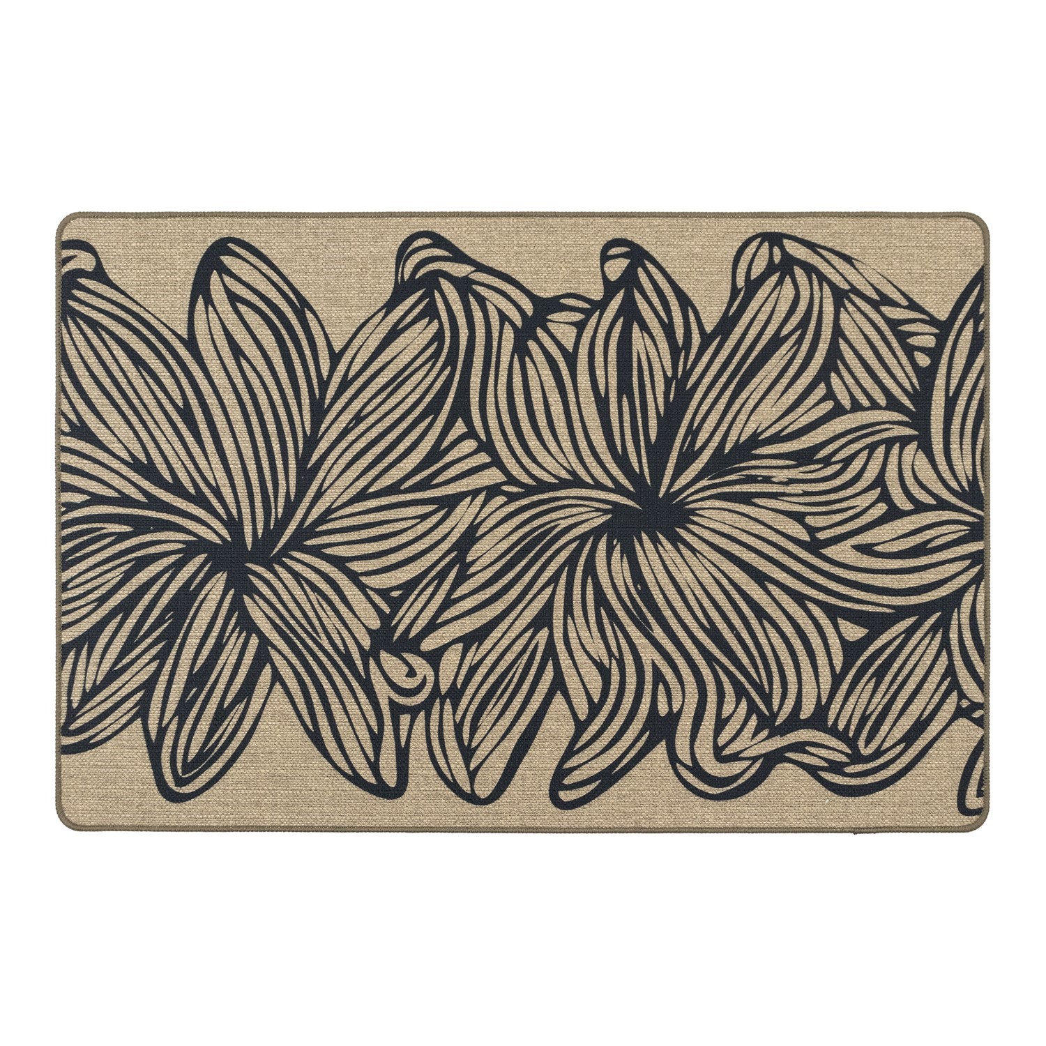 This stylish linen effect mat with a flower print, designed to suit any setting in and around your home, its elegant design combined with its durability is a great addition to your interior Perfect for entrances, kitchens, laundry rooms, offices, and more, it brings a touch of warmth and style to every setting Slim design ensures it easily fits underneath low-profile doors while the neutral/black blends with natural tones around the home The slip-resistant rubber backing helps prevent movement on most floor types when wiping your feet Another great feature is the flexibility of the mat; it’s wrinkle resistant, when you’ve washed the mat, it will lay flat with no creases Love the mat?!! A matching runner is available to create a cohesive style throughout your homeWhen your mat gets dirty, it’s no problem, simply pop it in the wash at 30°C100% Polyester with a rubber backingSuitable for indoor use Size: 50x75cm approx.
