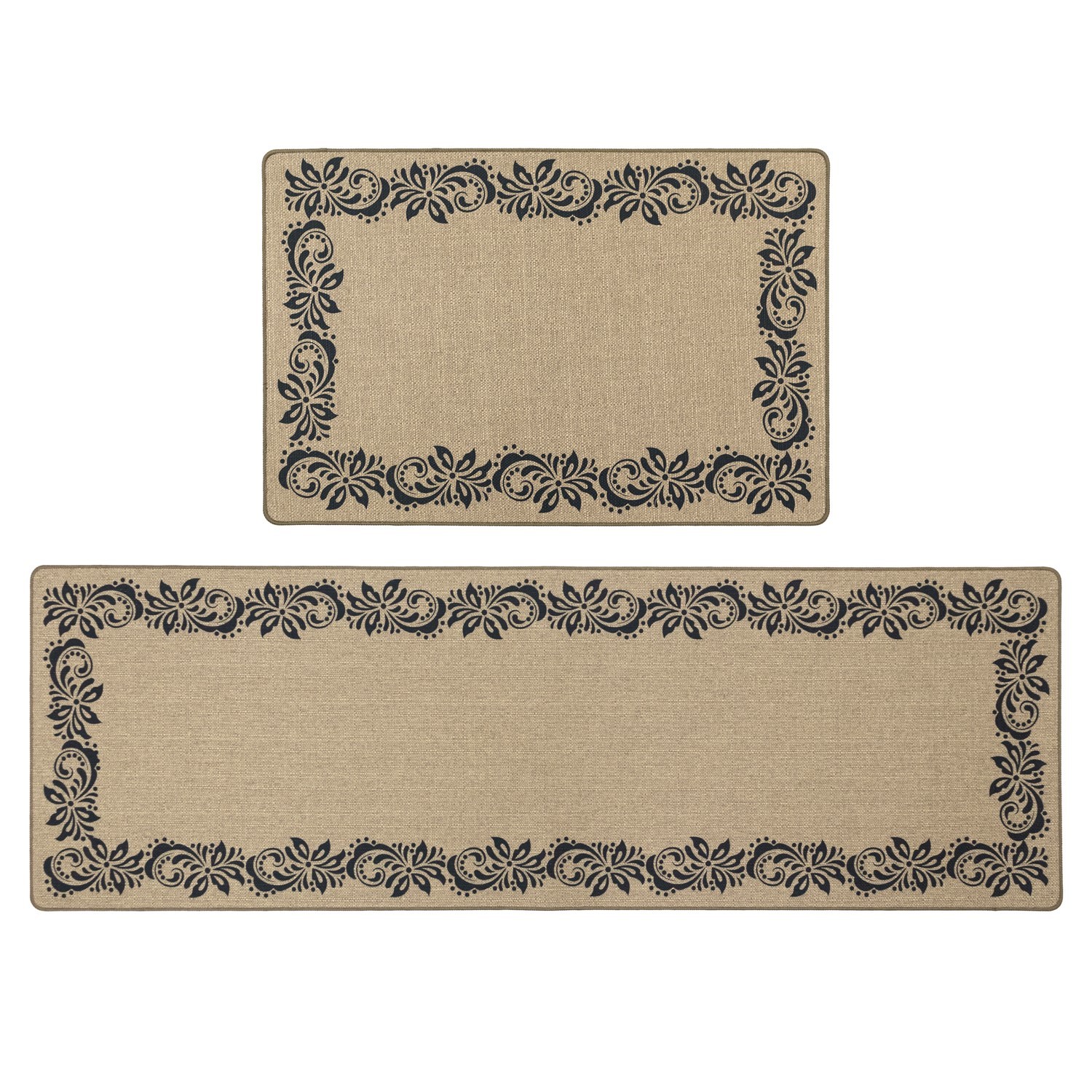Set includes matching mat and runner creating a cohesive style throughout your homeThis stylish linen effect set features a scroll border print, designed to suit any setting in and around your home, its elegant design combined with its durability is a great addition to your interior Perfect for entrances, kitchens, laundry rooms, offices, and more, it brings a touch of warmth and style to every setting Slim design ensures they easily fits underneath low-profile doors while the neutral/black blends with natural tones around the home The slip-resistant rubber backing helps prevent movement on most floor types when wiping your feet Another great feature is the flexibility; it’s wrinkle resistant, when you’ve washed the mat, it will lay flat with no creases When your mat gets dirty, it’s no problem, simply pop it in the wash. The range is fully machine washable at 30°C100% Polyester with a rubber backingSuitable for indoor use Mat: 50x75cm approx. Runner: 50x150cm approx.