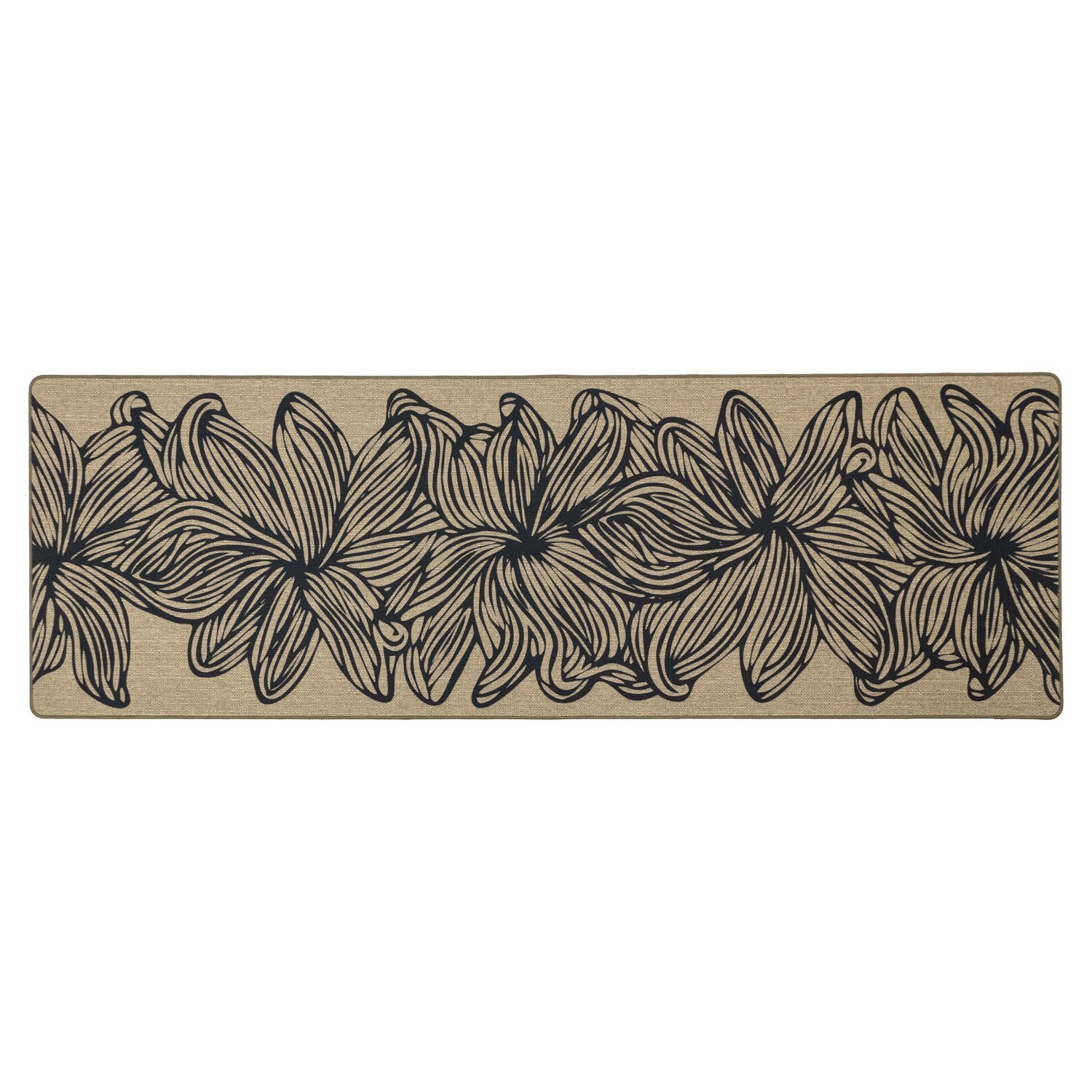 Simple yet so elegant!Our Elegance runner is designed to suit most settings, it’s perfect for hallways, entrances, kitchens or patios to name a few places for this product to live. It features a backing that helps prevent movement on most floor types and can be machine washed when it gets dirty. The Elegance runner brings a touch of class to any room with its linen look and printed silhouettes. The rubber backing provides a comfortable feel underfoot, plus this runner is slim which means it can fit under most doors when there isn’t much space.