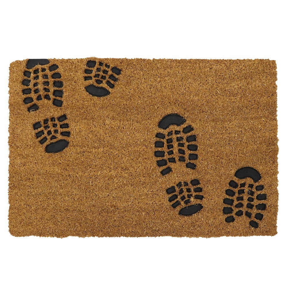Our rubber embossed range is made from 100% coir which is made from natural coconut fibres and the coir has been mechanically twisted for less shedding and that premium finish. The coir mat features embossed detail filled with rubber to create a contrasting design. The coir offers fantastic scraping qualities for muddy shoes and boots and absorbs water well, meaning your floors stay cleaner for longer. The doormat is suitable for all weathers, all year round and mainly used outdoors but can be used indoors too. The footprints design welcomes your guests before they enter the home, it can be used at the door, porch, greenhouse, shed, conservatory, patios or anywhere you want.