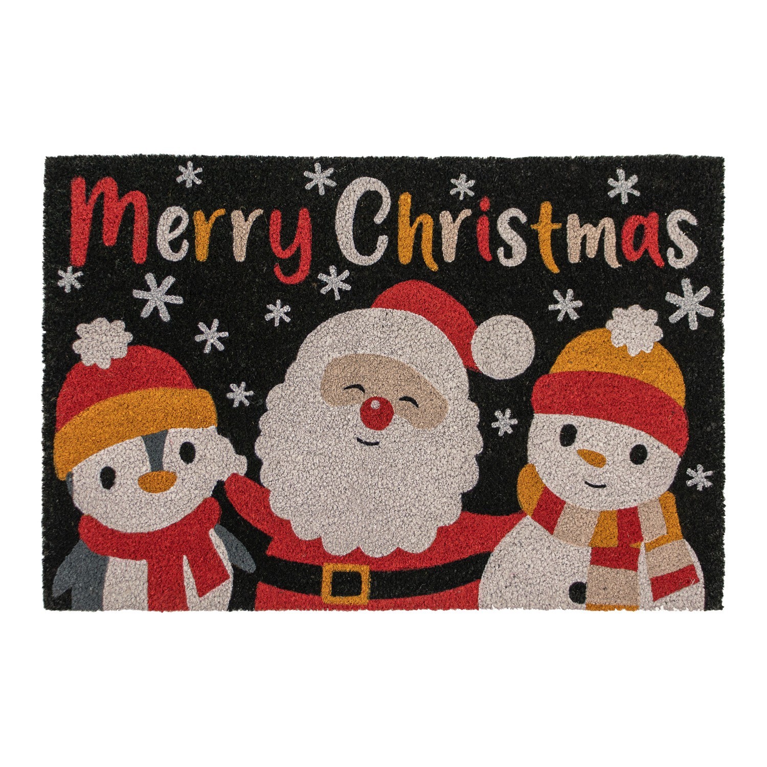 Perfect for welcoming friends and family over the festive season, our novelty doormat provides festive cheer as soon as you walk in the door. The Christmas coir mat is suitable for any entrance, doorway or porch, the coconut fibre (natural coir) offers fantastic scraping qualities for muddy shoes and boots and absorbs water well, meaning your floors stay cleaner for longer. The rubber latex backing reduces the risk of slipping and helps the mat stay flat to the floor with no curling. The doormat is suitable for all weathers, all year round and mainly used outdoors but can be used indoors too. Features: Novelty Santa and Friends design lifts the mats and welcomes your guests at the door, plus it lets Santa know to stop at your house 100% natural coir (coconut fibre) with a rubber latex backing The coconut fibre provides a strong surface trapping the dirt as you scrape your shoes or boots Our coir is mechanically twisted for less shedding, the coir strands stay on your mat and not on the floor The rubber latex backing reduces risk of slipping while wiping your feet The deep pile means the coir will deep get into the soles of boots and shoes For indoor and outdoor use Size: 60x90cm approx.
