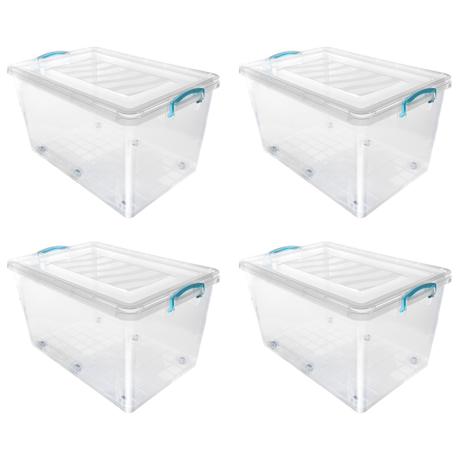 Keep things organised and secure with our set of 4 Clip Lid plastic storage range. Featuring practical clip-lock lids, these containers ensure contents are kept fresh and protected, making them ideal for both home and business use. Crafted from durable, BPA-free plastic, this storage solution is perfect for storing food, household items, bedding, toys, office supplies and much more. Features 6 wheels so they can be moved easily and perfect for underbed storage. They’re stackable for efficient storage and designed with convenience in mind, suitable for the freezer, microwave and dishwasher safe.
