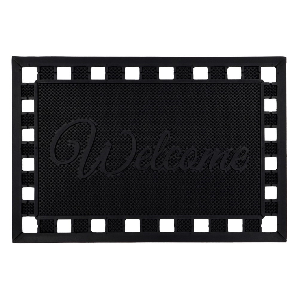 Our Maiva Welcome scraper mat features flexible rubber studs that trap dirt and grit from shoes, while the raised surface gets into the gooves of the sole removing excess mud and dirt, leaving your home clean and tidy. The mat is framed with an attractive cut out border for the perfect finishing touch. The frame is finished with bevelled edges which help prevent tripping as the mat lays flat to the floor making it easy for wheels to glide over, it’s also designed to allow water to drain away easily. The decorative design and welcome message provide a pleasant greeting for your visitors, plus it’s minimal maintenance, simply shake or hose to clean. The rubber mat is long lasting and durable making the doormat suitable for use in all weathers. Features: