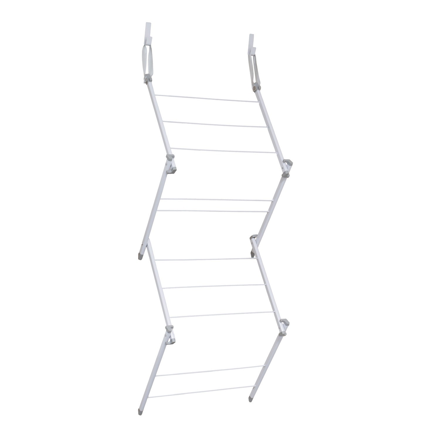 10 hanging bars ideal for everyday laundry essentials The over door airer provides 4.5M of drying space, holds up to 4kg suitable for a small wash load Ideal for apartments, student rooms, small spaces and more, plus the airer folds flat for storage when not in useCompact and lightweight - easy to move and reposition wherever neededConstructed from durable materials with a white powder coated finish Complete with two hooks for the door and features protective caps to prevent scratching the door Open Size: H:135 x W:50 x D:23cm approx. With Hooks: H:141 x W:50 x D:23cm approx. Folded Size: H:8 x W:50 x D:44cm approx.