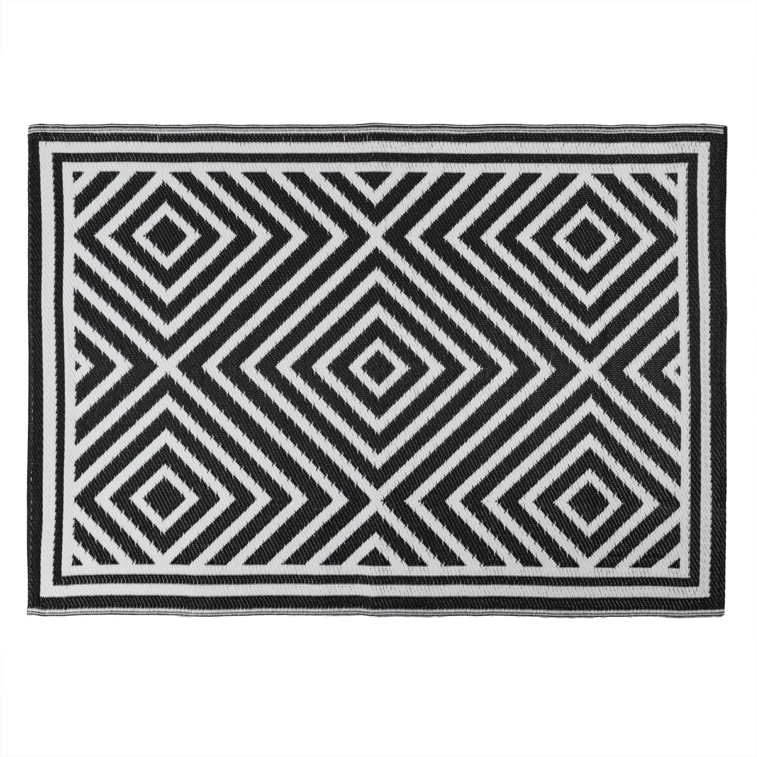A great way to add colour and style to your garden. All our rugs have a reversible design, the rugs are lightweight, durable and weather resistant. Easy to clean, simply wipe up any spillage and if you wanted to store away the rugs roll up easily taking up minimal space. Not only are they a great addition to the garden but they can be used on picnics, take them camping or holiday homes. Features: A great addition both inside or outside the home adding practicality and style to any space This stylish rug features a flatwoven pile constructed of 100% polypropylene meaning its hardwearing and durable Contemporary and eye-catching design adds style and comfort to your outdoor spaces Two styles in one – the mats boast a reversible design so you can choose which way you want to have it Looks great on the decking, patio or balcony areas. Can be used to sit on or many people opt to have the mat under the front of furniture or tables It makes a great area for children to sit and play too, with the material it’s easy to maintain, simply wipe up any spills Multi-use the mats can be taken to the beach, park or with you on picnics, ideal for taking on holidays too; camping or caravanning Weatherproof and durable, made to withstand the sun and rain Lightweight and rolls up easily if you want to store it neatly away Size: 150 x 210 cm approx.